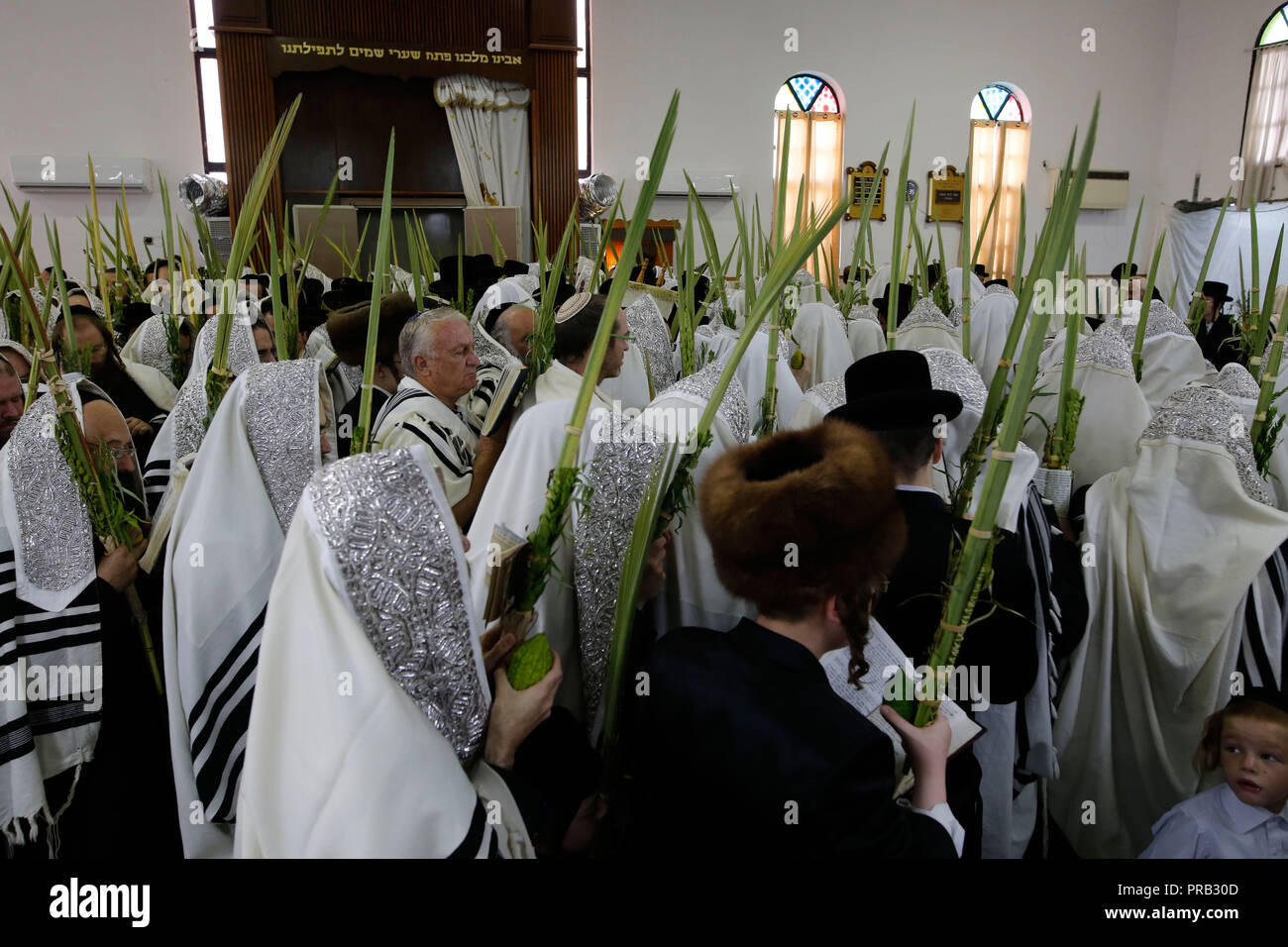 Rehovot Israel 30th Sep 2018 Ultra Orthodox Jews Take Part In The Hoshana Raba Ritual At The End Of The Week Long Sukkot Festival At Their Synagogue In Rehovot Israel On Sept 30